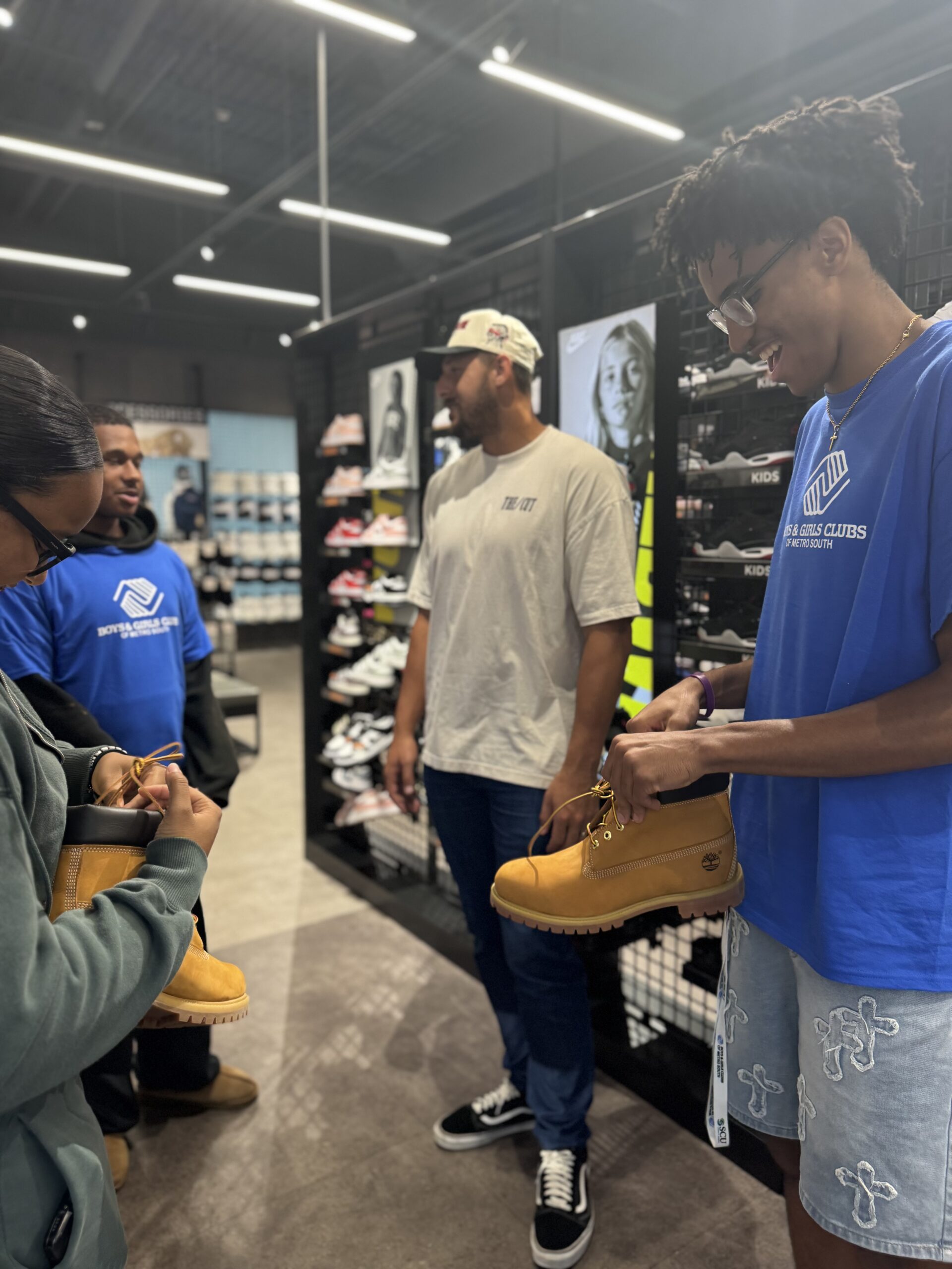 Austin Hooper and the foundation recently hosted a special shopping spree for a group from the Boys and Girls Club of Metro South. Austin personally helped the children select new sneakers and essential school supplies, and each child received a meal and a swag bag. JD Sports generously funded the event with $250 gift cards for each child, while Austin covered extra expenses for every foster care shopper.